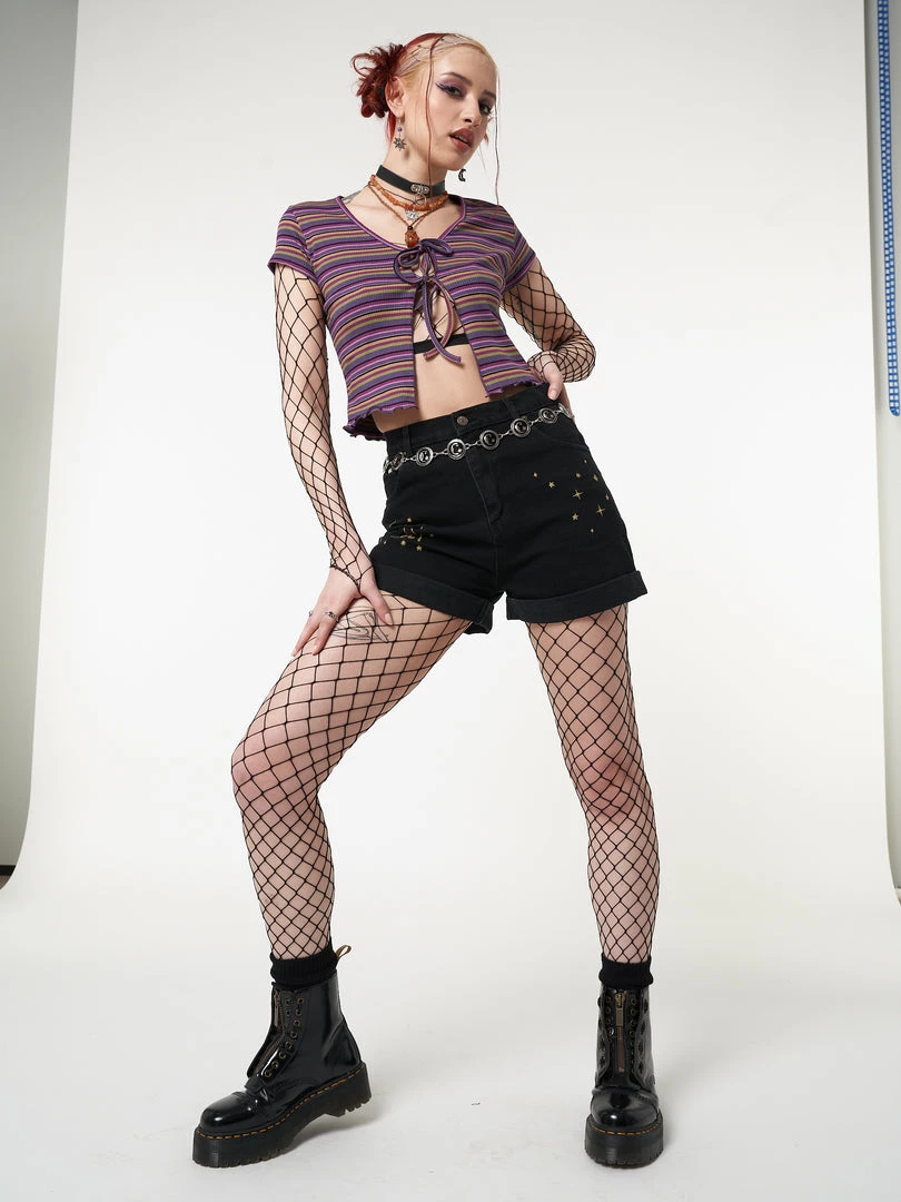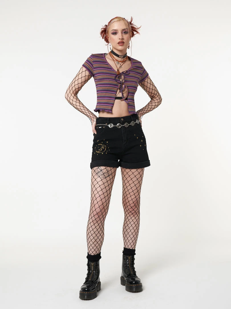 Minga London Most Wanted Luna Striped Tie Front Knit Cardigan