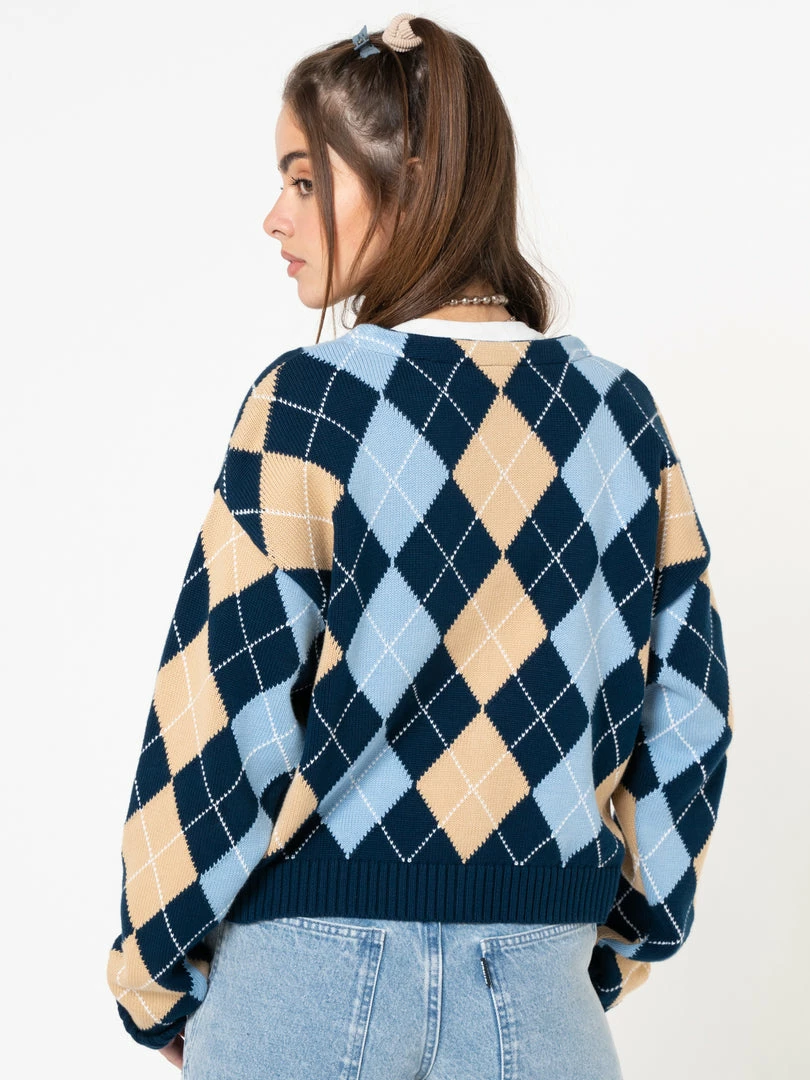 - Argyle pattern in blue and beige