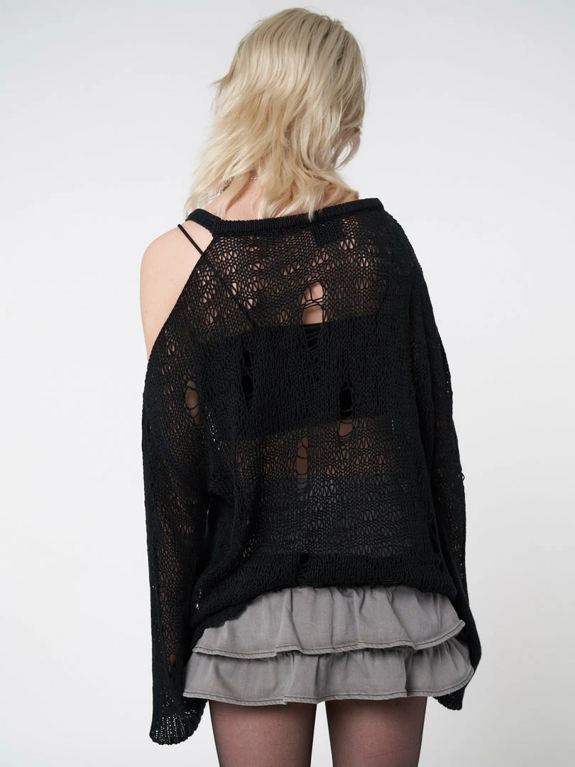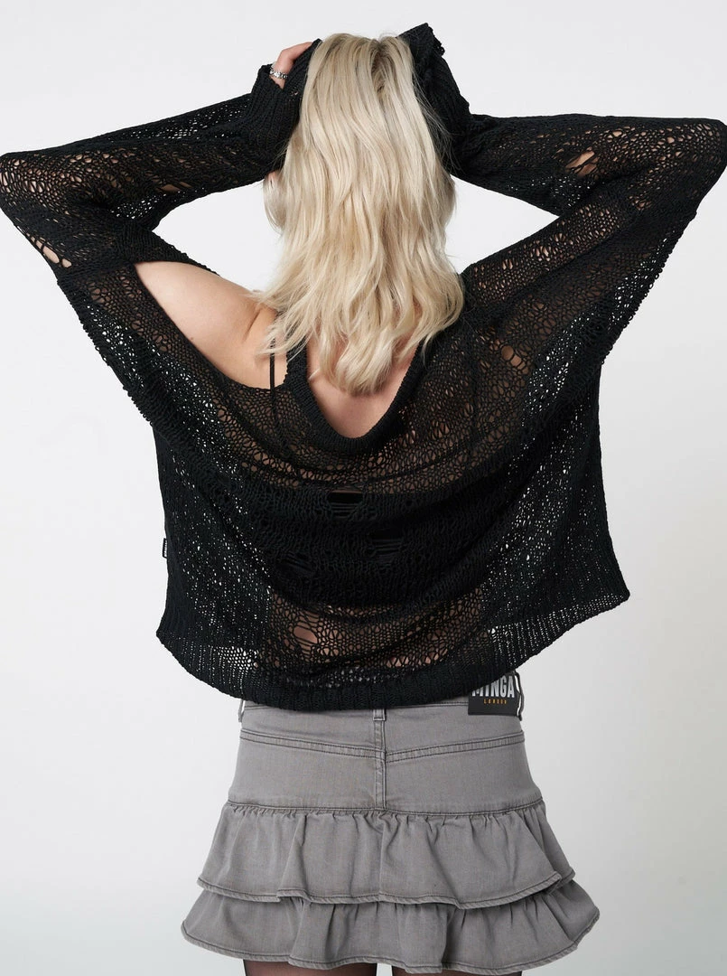 - Net knitted jumper in black